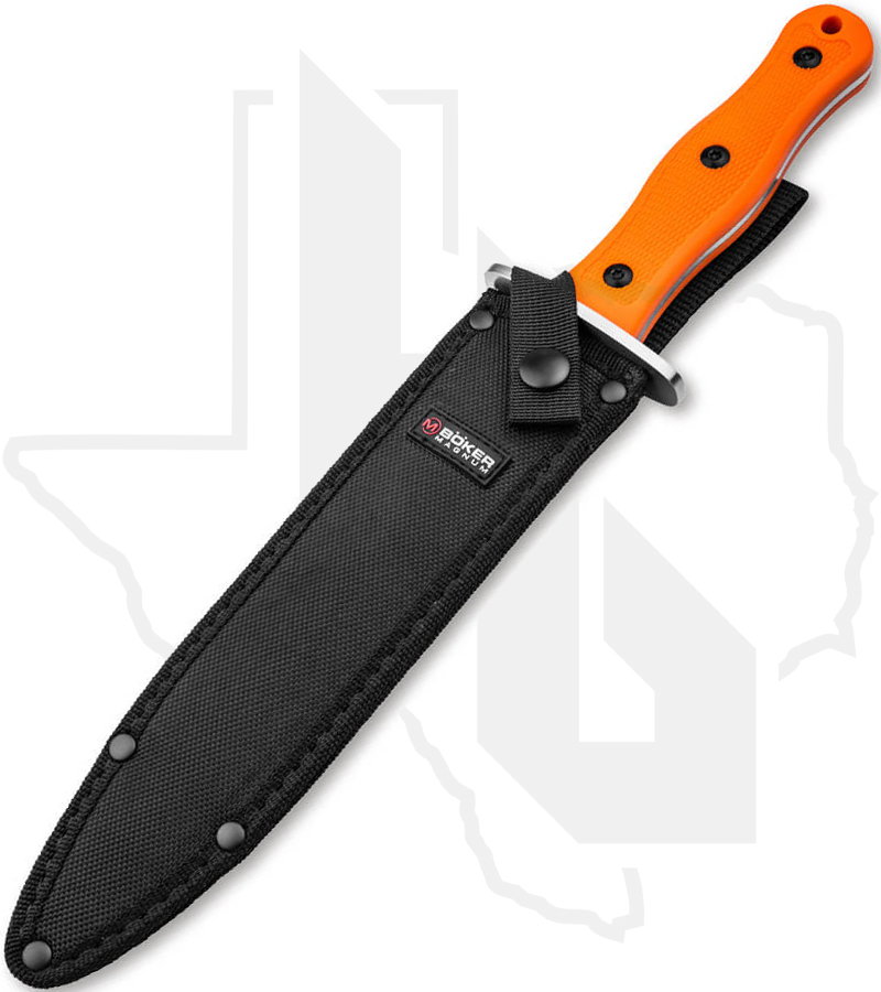 When a rifle shot poses too much risk to the dogs, a dependable boar catcher becomes essential. This model features a robust full-tang construction with a wide stainless steel guard for added safety. The double-edged 440C stainless steel blade delivers strength and sharpness, while the rugged nylon sheath includes a belt loop and push-button latch for secure, accessible carry.