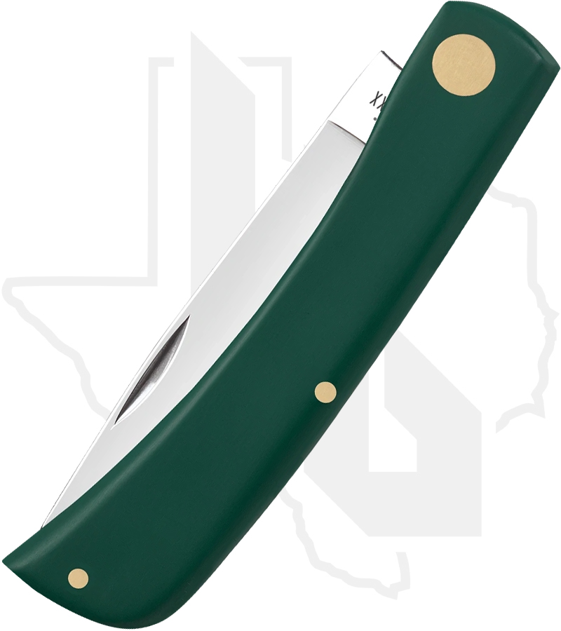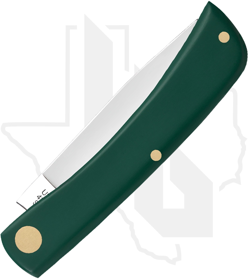 Proudly handcrafted in the USA, the Case Sod Buster Jr. represents classic American craftsmanship in a simple, dependable design. This timeless knife features smooth spruce green synthetic handle scales highlighted by a nickel silver arrowhead Inlay shield. It comes equipped with a Tru-Sharp surgical stainless steel skinner blade, finished with a mirror polish for lasting sharpness and a brilliant shine.