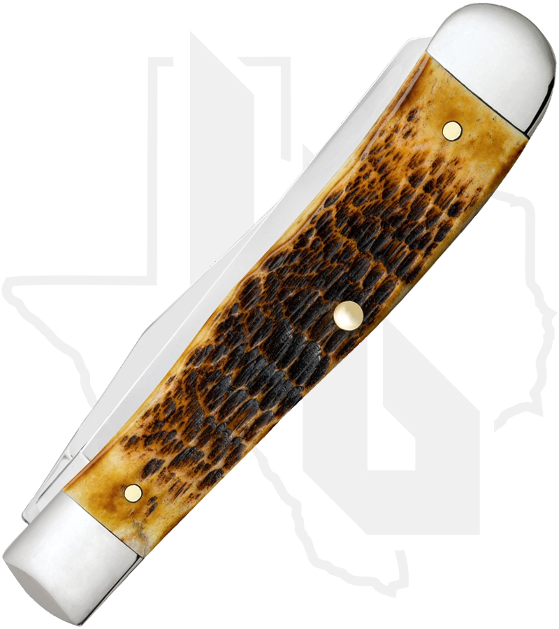 The Trapper gets its name from the consumer it was designed for. Because of its basic trapping and skinning blades and its light weight, it is a must-have knife for those who trap small game. It is a jack knife with two full length blades; a slender Clip and a long Spey. The Clip blade is commonly used as a multi-purpose blade and preferred for detail work while the Spey blade is commonly used as an all-purpose utility blade. This knife is constructed with Case Tru-Sharp stainless steel which is a special high-carbon steel that helps the blades hold an edge longer than conventional steel. It also offers extraordinary blade strength and corrosion resistance. Comes conveniently packaged in a box. Made in Bradford, PA, USA from domestic and imported materials.